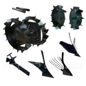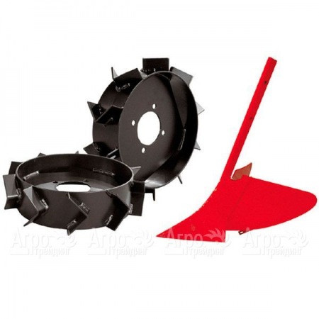 Комплект: грунтозацепы 460х160, удлинители, сцепка, окучник, плуг, картофелекопатель. Подходит для моделей культиваторов: ECO, PRIMO, ELITE, QJ, VARIO. Производство - Франция.