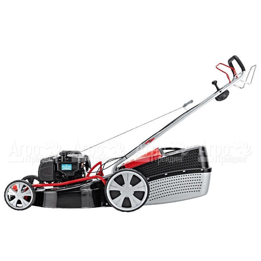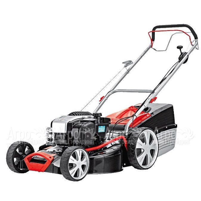 Характеристики товара: Бензиновая газонокосилка AL-KO Classic 5.16 VS-B PlusПодробное описание товараГазонокосилка бензиновая AL-KO Classic 5.16 VS-B Plus с мощностью двигателя 3.26 л.с. и шириной захвата косилочной деки 51 см рекомендована для работы на территориях площадью до 18 соток. Наличие вариатора скорости, позволяющему пользователю подстраивать скорость газонокосилки бензиновой AL-KO Classic 5.16 VS-B Plus под свой шаг, является особенностью данной модели. Большие задние колесные диски с приводом обеспечивают оптимальную тягу и проходимость по рельефному или заросшему травой участку, повышают маневренность. Многоступенчатая регулировка высоты кошения, при помощи рычага с пружинным механизмом, позволяет просто и быстро настроить газонокосилку для скашивания газонной травы на высоте, которую предпочитает пользователь. Форма косилочной деки ассиметричная, что дает возможность выполнять покос травы близко к забору или другим препятствиям, аккуратно окашивать кромочные линии газона. Аэродинамическая форма травосборника обеспечивает максимально плотное заполнение, индикатор заполнения позволяет пользователю вовремя осуществлять опорожнение содержимого травосборника. Шарикоподшипники в колесных дисках способствуют качеству хода и повышают продолжительность службы техники. Благодаря фронтальной ручке, расположенной спереди корпуса, газонокосилку удобно поднимать или переносить. Газонокосилка предоставляет все возможные режимы при кошении - мульчирование, сбор, выброс позади или сбоку.