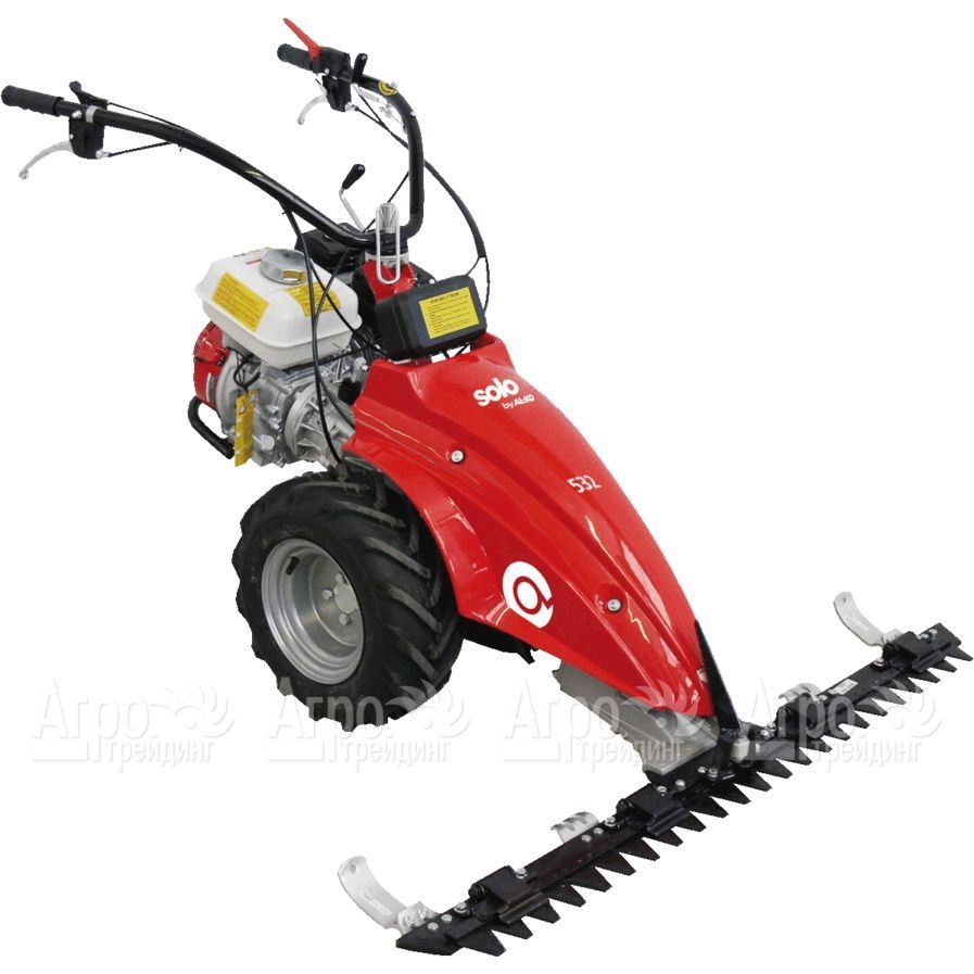 Характеристики товара: Бензиновая сенокосилка Solo by AL-KO 532Подробное описание товараБензиновая сенокосилка Solo by AL-KO 532 фронтального типа разработана в помощь фермерам для заготовки сена. Высокая производительность обеспечивается благодаря мощному двигателю Honda и режущему механизму с большой шириной полосы скашивания. Бензиновую сенокосилку Solo by AL-KO 532 можно применять на территориях имеющим сложный рельеф. Колеса с широкими шинами и глубоким протектором обеспечивают отличную проходимость по склону и грязи. Две передние скорости и реверс позволяют пользователю переключаться на нужный режим. Регулируемая рукоятка способствует удобству работы пользователю с любым ростом и дает возможность идти сбоку от сенокосилки. Корпус изготовленный из листовой стали обладает прочностью и продолжительной службой.