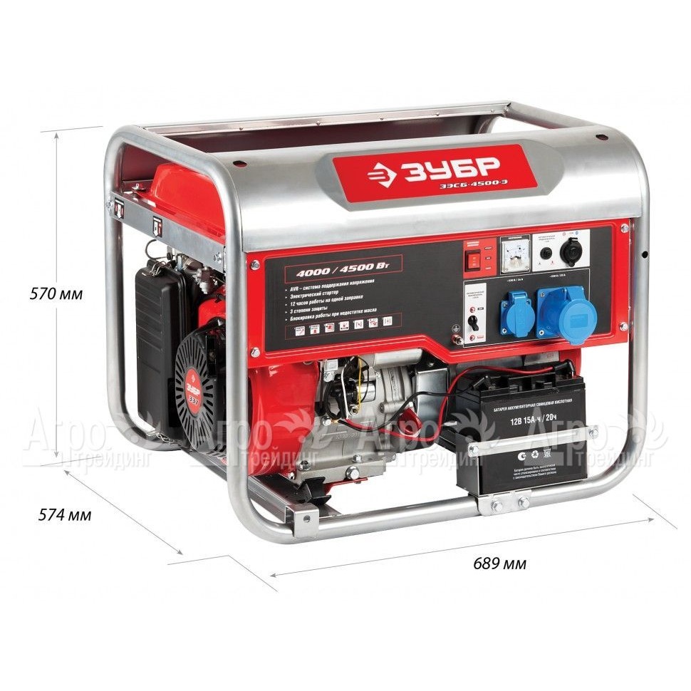 Бензогенератор Зубр ЗЭСБ-4500-Э 4.5 кВт с электростартером
