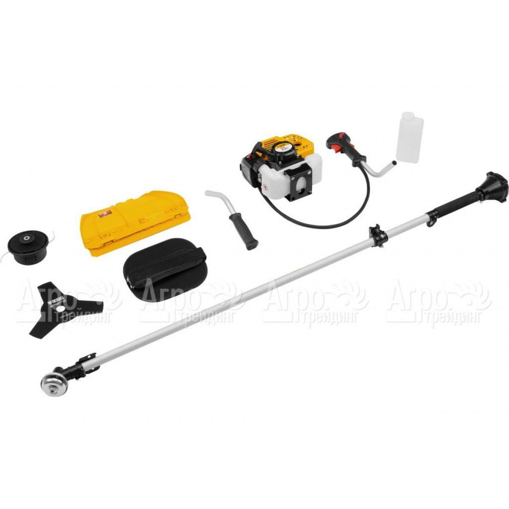 Характеристики товара: Бензокоса (бензиновый триммер) Denzel DTS-33Подробное описание товараDenzel DTS-33, бензотриммер с 33 см³ двигателем и неделимой штангой, приходит в наборе из двух частей. Включает укрепленную катушку для скашивания травы и трехлопастный нож для зарослей и кустарника. Широкий проход леской (42 см) и ножа (25,5 см) обеспечивают прогрессивное выполнение задач. С мощным двухтактным двигателем (1,8 л.с.), DTS-33 предлагает эффективность и независимость, удобно работая в отдаленных участках без сети электропитания. Преимущества Denzel DTS-33: долговечные компоненты (хромированный цилиндр, надежный редуктор); упрощенный старт с помощью Easy Start и праймера; защита от случайного запуска; комфортная работа с одноплечевой подвеской и мягкой защитой бедра; безопасная эксплуатация с прочным кожухом; удобное обновление лески и подрезка ее концов; эргономичные рукоятки; упрощенная подготовка к работе и включенный дозатор для топлива. |