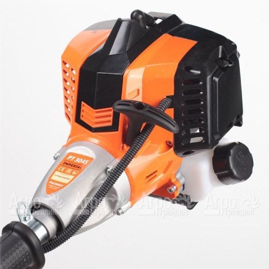 Характеристики товара: Бензокоса (бензиновый триммер) Patriot PT3045 ImperialПодробное описание товараСерия Imperial в новой линейке бензиновых триммеров PATRIOT, куда относят бензокосу (бензиновый триммер) Patriot PT3045 Imperial, характеризуется уникальным дизайном, оптимальной формой вентиляционных отверстий, улучшенной системой амортизации, чашкой сцепления изготовленной из металла, и трансмиссионным валом имеющим соединение звездочка, усиленную соединительную муфту и вращение в опорах скольжения. Инструмент удобен, надежен, рассчитан на продолжительную службу и разработан для частного пользования. Бензокоса (бензиновый триммер) Patriot PT3045 Imperial оснащена изогнутой штангой, имеющей разборную конструкцию, что не вызывает затруднений при транспортировке и неудобств при хранении инструмента, эргономичной J-образную ручку, имеющую усиленную базу крепления. В корпусе, защищающем двигатель инструмента, использовали утолщенный пластик для соединения внутренних деталей, что позволило обеспечить максимальную жесткость и, соответственно, надежность триммера. Система эффективного обдува двигателя, благодаря конструктивной особенности вентиляционных отверстий, не позволяет перегреваться двигателю при длительной работе. В зависимости от состояния участка, инструмент можно использовать с оптимальной режущей гарнитурой - полуавтоматической триммерной головкой, имеющей облегченную заправку лески, трехлопастным ножом или 3Т диском. Все насадки входят в комплектацию изделия.