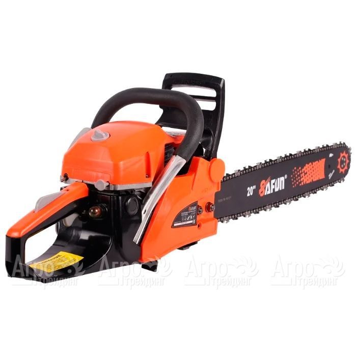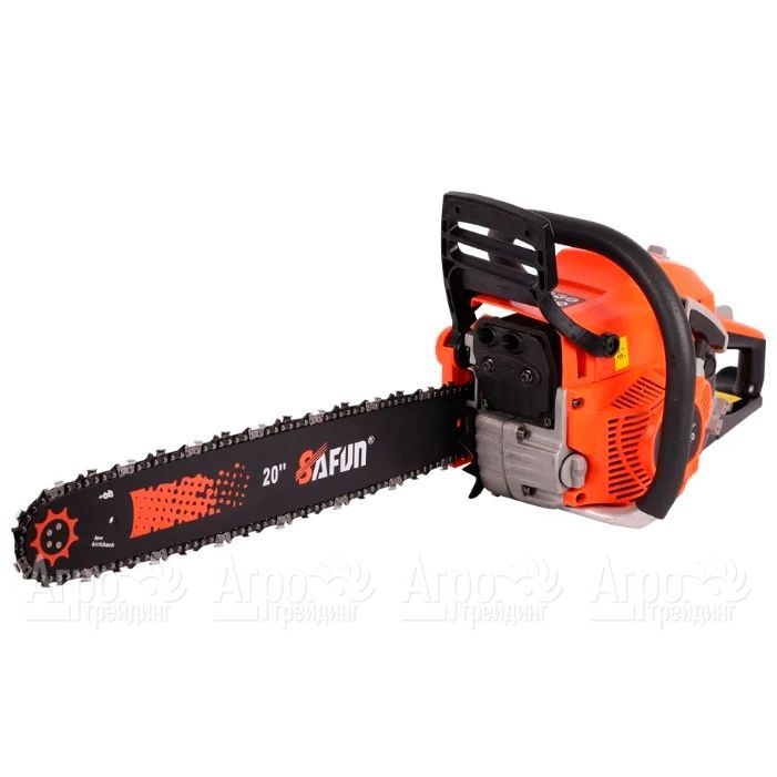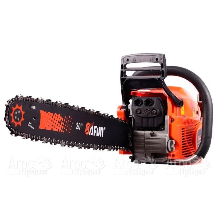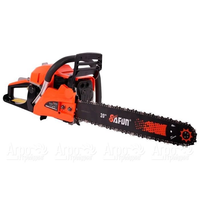 Характеристики товара: Бензопила Safun GCS-55-20"Подробное описание товараБензопила Safun GCS-55-20 оборудована системой «легкого запуска» с двухконтурным стартером, за счет чего двигатель заводится очень быстро. Благодаря продуманной системе виброгашения, которой оборудованы обе рукоятки, при работе с бензопилой вибрация практически не ощущается. Данный агрегат оборудован мощным двигателем, который обеспечивает высокую производительность работы. За счет механического тормоза двойного действия, способного мгновенно остановить цепь с ножами, эксплуатация инструмента становится максимально безопасной. Специальный предохранитель не допустит включения бензопилы при случайном нажатии на кнопку пуска.