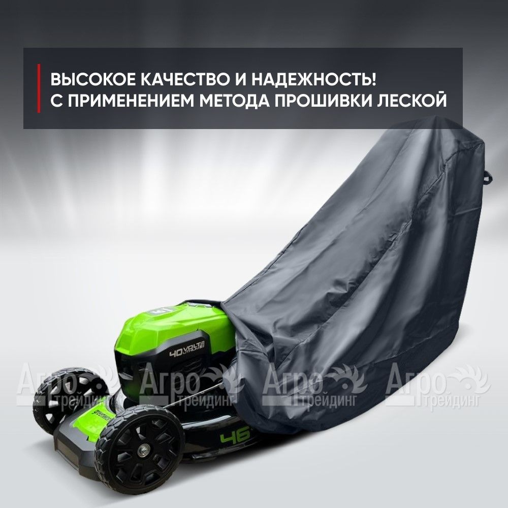 - Используемый в производстве чехла метод прошивки леской, а также профессиональное полиуретановое покрытие серии Pro New Technology обеспечивают водонепроницаемость, предотвращая проникновение влаги, снега и грязи внутрь чехла, а благодаря применению в производстве дополнительных защитных технологий ваша газонокосилка будет полностью оберегаться от механических повреждений, такие как удары и царапины, сохраняя внешний и технический вид в идеальном состоянии.