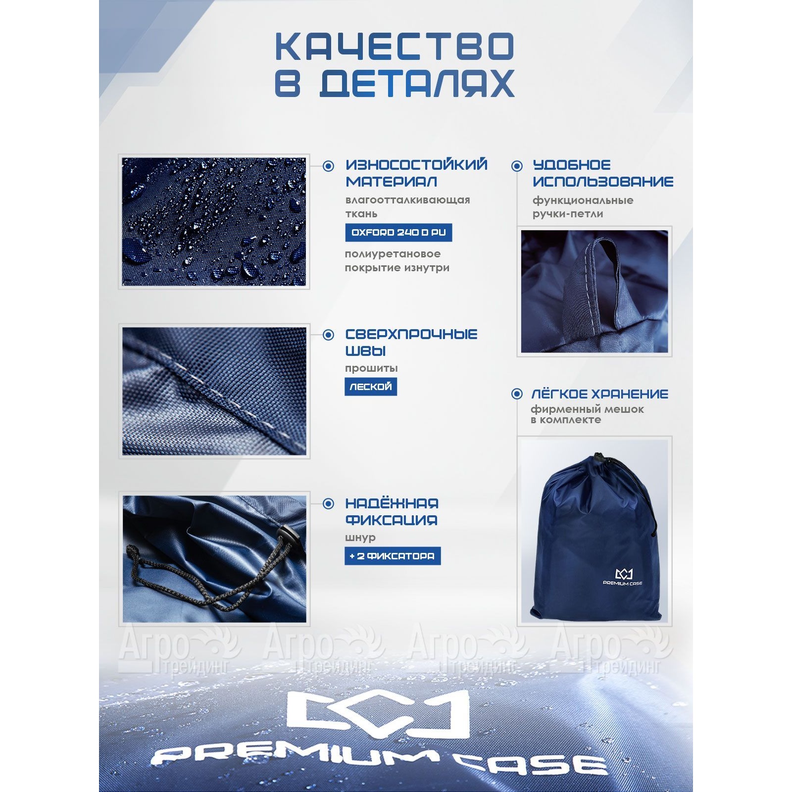 Основным отличием этого чехла является высокопрочный материал, прошитый леской, а также специализированная водоотталкивающая полиуретановая пропитка. Все это обеспечивают надежную защиту вашей газонокосилки от влаги, снега, грязи и других неблагоприятных воздействий и гарантируют максимальную сохранность вашей техники на долгие годы. Два надежных фиксатора (спереди и сзади) и сверхпрочный шнурок внизу чехла обеспечивают его плотное прилегание к технике и гарантируют безупречную защиту от непогоды и каких-либо повреждений. Для удобства использования чехол-накидка оснащена практичными петельчатыми ручками, что дает возможность быстро как одевать, так снимать его с техники. Особенности и преимущества чехла «PREMIUM CASE®» для бензиновой газонокосилки: ● Материал ткани: Oxford 240 D PU с использованием защитных технологий; ● Полиуретановая водоотталкивающая пропитка профессиональной серии; ● Все швы прошиты специальной леской, что делает чехол прочным и долговечным; ● Имеет шнур и 2-фиксатора (спереди/сзади); ● Отлично защищает технику не только на открытом воздухе, но и в закрытом помещении; ● На чехле расположены удобные петельчатые ручки для удобства снятия и установки; ● Выдерживает любую стирку, сохраняя свою структуру и профессиональные качества; ● Комплектуется фирменным мешком для хранения чехла; ● Элегантный цвет INDIGO. Высочайшее качество материалов, надежная защита и элегантный дизайн - все это вы найдете в защитном чехле «PREMIUM CASE®» ! Идеально подойдет для бензиновых газонокосилок с шириной захвата от 42-46 сантиметров следующих производителей: Greenworks, APEK-AS, Senix, Daewoo, Villartec, Honda, Champion, Denzel, Fubag, Alpina, Husqvarna, Patriot, Al-Ko, Hyundai, Steher, Deko, Haitec, Geos, Yard Fox, Evoline, Ryobi, Worx, Redverg, Wortex, WorkMaster, Pioneer, Gigant, Мобил К, Starwind, Alteco, Oasis, Karcher, Bosch, Wolf-Garten, P.I.T., Carver, Энергопром, Graphite, Ma.Ri.Na, MTD, Villager, Stiga, Black+Decker, Verto, Texas, Elmos, Makita, Oleo-Mac и мн. другие бренды. Установка защитного чехла «PREMIUM CASE®»: Накиньте чехол на вашу газонокосилку, после чего сначала затяните шнурок спереди и закрепите встроенным фиксатором, затем аналогично сзади. Чехол идеально разместиться на вашей технике, обеспечивая максимальную защиту. Комплектация: