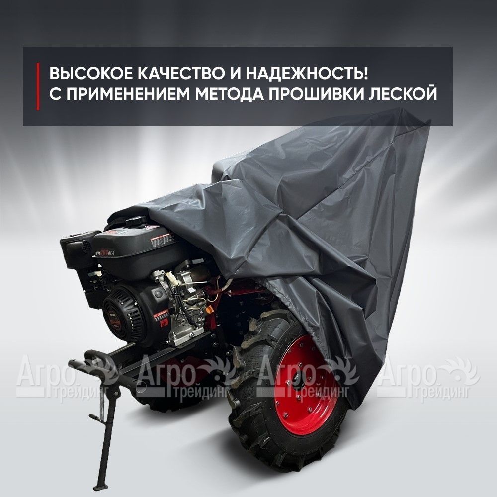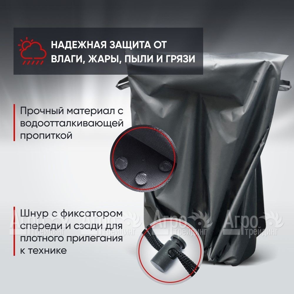 - В задней части чехла также предусмотрены удобные петельчатые ручки, которые помогают быстро и легко надевать и снимать его с мотоблока.