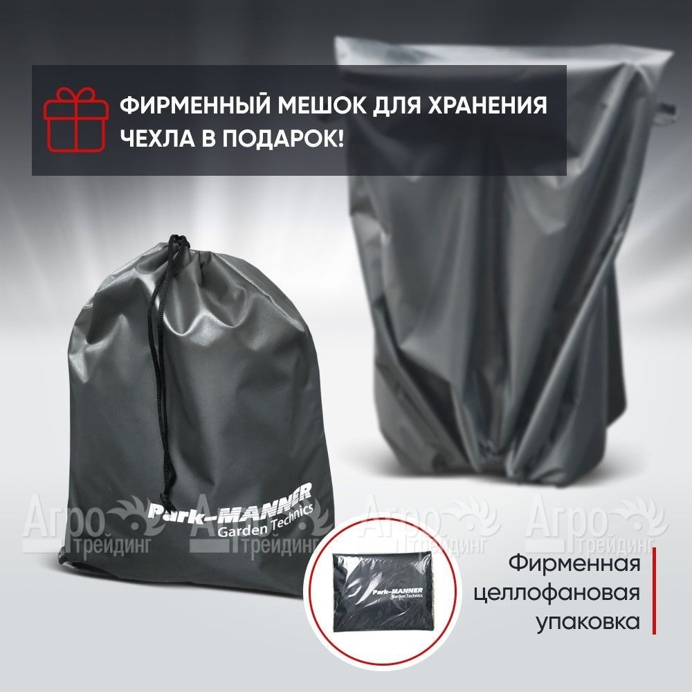 - Одним из основных преимуществ защитного чехла Park Manner является метод прошивки леской, с использованием сверхпрочной уникальной ткани и специальным водоотталкивающим полиуретановым покрытием серии Pro New Technology. Все это великолепно обеспечивает непроницаемость, влагостойкость, а также надежную защиту от высоких температур и различных механических воздействий. Таким образом, ваш мотоблок будет надежно защищен от любых неблагоприятных условий.