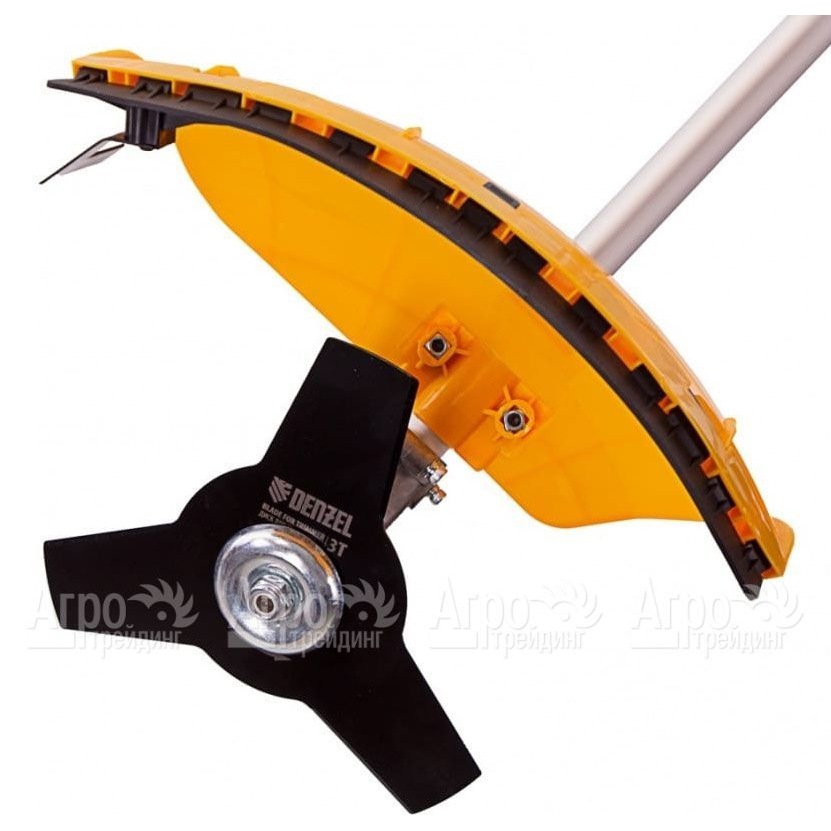 Характеристики товара: Электрокоса (электрический триммер) Denzel TE-1220Подробное описание товараЭффективный и надежный, электрический триммер Denzel TE-1220, обладающий мощностью 1200 Вт и снабженный съемной штангой, катушкой и диском, идеален для обработки различных видов растительности, включая травы с твердыми стеблями. С высокой скоростью вращения в 7500 об/мин, этот инструмент обеспечивает ширину скашивания 38 см при использовании лески и 25,5 см при использовании диска, что делает его оптимальным для работы на небольших участках. Электромотор исключает необходимость приготовления топливной смеси и сложного обслуживания, при этом не создает вредных выбросов и несет преимущества для здоровья и комфорта. Особенности: