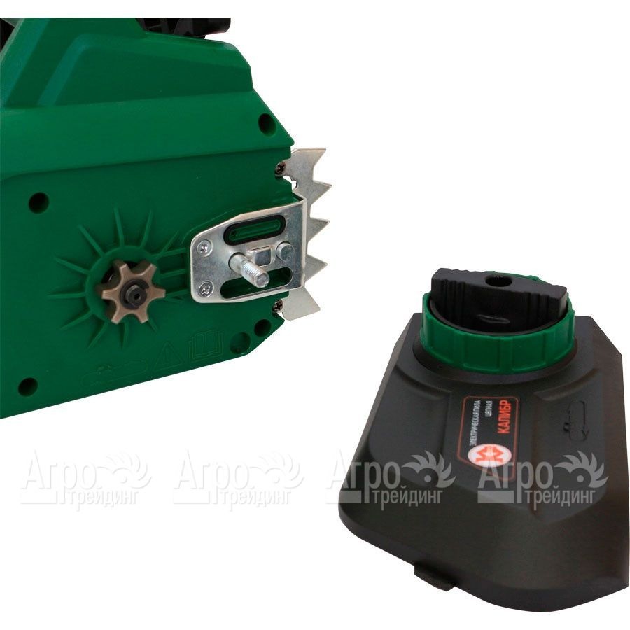 Электропила Калибр ЭПЦ-2200/16-16 – мощное садовое устройство, которое отличается простотой эксплуатации (кнопочное управление) и обслуживания. Установка инструментальной цепи осуществляется с помощью инструмента, входящего в комплект.