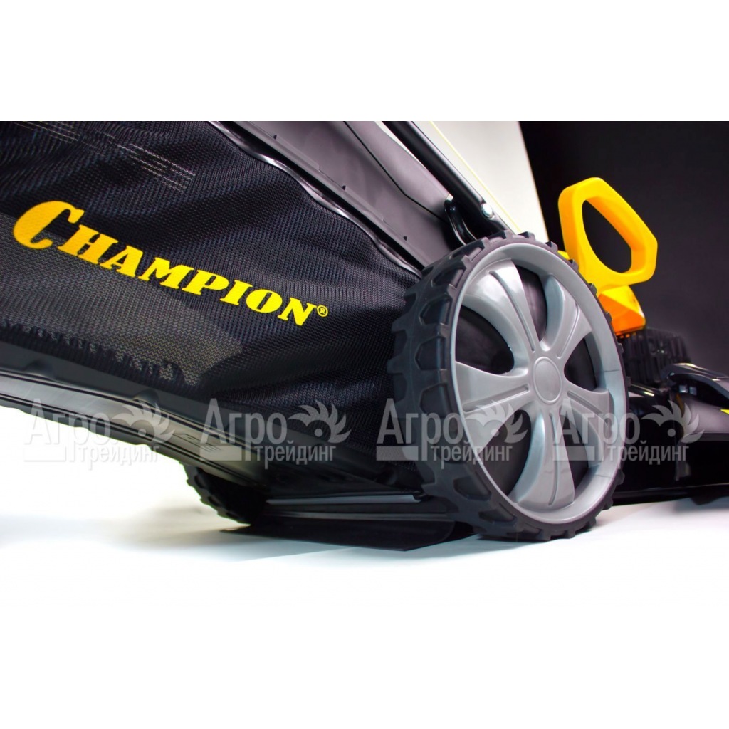Характеристики товара: Газонокосилка бензиновая Champion LM5345Подробное описание товараСамоходная газонокосилка Champion LM5345 используется для обработки большого по площади газонного или садового участка. Агрегат имеет три режима работы: сбор травы в контейнер, мульчирование и боковой выброс. Для эффективной уборки газона от опавших листьев и скошенной травы можно применять функцию сбора садового мусора в контейнер. Система мульчирования позволяет использовать измельченную траву в качестве природного удобрения газона. При стрижке высокой и густой травы можно включить режим выброса через боковой дефлектор. Широкие колеса с рифленым протектором шин обеспечивают высокую проходимость по неровному участку и практически не оставляют следов при работе. Эргономическая рукоятка во время длительной эксплуатации снижает нагрузки на руки оператора. Для очистки режущей деки от садового мусора шланг с водой подключается к штуцеру, расположенному на корпусе агрегата. |