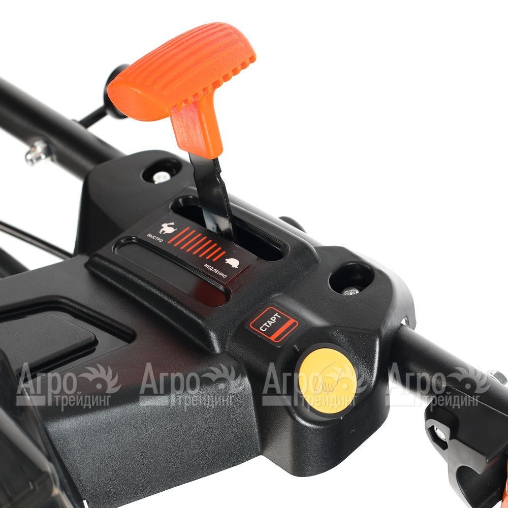 Характеристики товара: Газонокосилка бензиновая Patriot PT 53 LSEПодробное описание товараГазонокосилка бензиновая Patriot PT 53 LSE с мощным четырехтактным двигателем Patriot обеспечивает эффективную производительность на участках средней площади, предоставляет пользователю несколько режимов скашивания: мульчирование, сбор в контейнер, боковой выброс. Самоходная трансмиссия облегчает работу на неровных участках. Рукоятка оснащена мягкими накладками, регулируется по высоте и имеет складную конструкцию, что упрощает транспортировку и экономит место при хранении газонокосилки бензиновой Patriot PT 53 LSE. Накопительный контейнер рассчитан на 60 литров, это дает возможность в течении продолжительного времени работать не прерываясь на частые остановки для опорожнения контейнера. Центральный способ регулировки высоты кошения обеспечивает, с помощью специального рычага, быструю и простую установку деки в одно из семи возможный положений, позволяющих осуществлять скашивание на высоте 30-75 мм от поверхности почвы. Регулятор оборотов двигателя, расположенный на рукоятке в свободной доступности руки, обеспечивает легкость управления. Колесные диски с резиновым протектором имеют повышенное сцепление. Двигатель Patriot характеризуется надежностью и продолжительной службой, может запускаться в рабочий режим как электрическим стартером, так и ручным способом. Изделие комплектуется заглушкой, позволяющей осуществлять функцию мульчирования, и литий - ионным аккумулятором. |