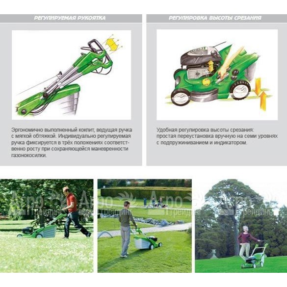 Характеристики товара: Газонокосилка бензиновая Viking MB 655.1 VПодробное описание товараНадежная и комфортная газонокосилка бензиновая Viking MB 655.1 V с моторизированным приводом Vario задних колес позволяет пользователю без особого напряжения обрабатывать участки с газоном больших площадей. Техника показывает отличные результаты кошения - чистый и великолепно подстриженный газон. Двигатель характеризуется мощностью, высоким ресурсом, надежностью, пониженным шумом и безупречным запуском в работу. Комплектуется емким травосборником нового образца: воздушные отверстия направлены шлицами вниз, что не позволяет пыли и травяным отходам распространяться наверх; обеспечивает компактное, максимальное заполнение и удобную разгрузку; встроенный индикатор заполнения позволяет вовремя опорожнять контейнер. Имеет прочную опорную раму, корпус из алюминиевого сплава с порошковым красочным покрытием защищен от коррозии. Специальные буртики предотвращают корпус от повреждения: боковые - от царапин, при кошении около бордюров и заборов, а передний - смягчает удары при случайном наезде газонокосилки Viking MB 655.1 V на камни и другие твердые препятствия. Техника комфортна в использовании: ведущая рукоятка складная и регулируется в трех положениях по высоте; имеет быструю и простую установку оптимального уровня высоты покоса; удобный рычаг управления скоростным режимом расположен на рукоятке. Приводные колеса обеспечивают курсовую устойчивость и отличную тягу.