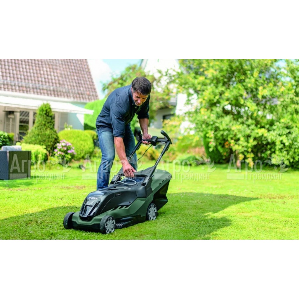 Характеристики товара: Газонокосилка электрическая Bosch AdvancedRotak 770Подробное описание товараГазонокосилка электрическая Bosch AdvancedRotak 770 представляет собой современную модель садовой техники, с хорошей производительностью, надёжной работой всех узлов и привлекательным дизайном. Данный агрегат будет полезен на приусадебном участке, на даче, в саду или других местах, где имеется возможность подключить машину к сети центрального электроснабжения или мобильному генератору электрического тока. К особенностям газонокосилки Bosch AdvancedRotak 770 относят простоту эксплуатации и обслуживания, высокую производительность и низкий уровень шума, производимого работающим агрегатом. В качестве режущего инструмента используется стальной роторный нож. Скошенная трава с потоком воздуха, создаваемого вращающимися лезвиями, попадает в травосборник большого объёма. Ёмкость закреплена на быстросъёмных фиксаторах. Поэтому освободить её от растительной срезки не составляет труда. Все элементы управления техникой сосредоточены на эргономичной рукоятке, регулируемой в различных плоскостях для удобства оператора. Для переноски машины на её корпусе имеется дополнительная ручка.