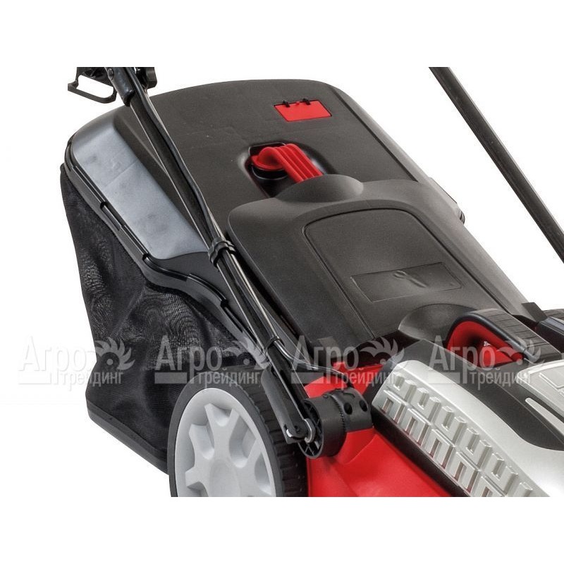 Характеристики товара: Газонокосилка электрическая MTD 4218 E HWПодробное описание товараГазонокосилка MTD 4218 E HW предназначена для ухода за газонным участком площадью до 500 м2. В зависимости от рельефа обрабатываемой территории, можно регулировать высоту кошения травы. Данная модель имеет два режима среза травы: задний выброс травы или ее сбор в контейнер. При максимальном наполнении травосборника срабатывает индикатор, сигнализирующий о необходимости опустошения бака. Дополнительно можно устанавливать режим мульчирования, который позволяет использовать дробленую траву для удобрения газона. Задние колеса с глубоким протектором шин обеспечивают надежное сцепление с обрабатываемой поверхностью. Электрическая газонокосилка MTD 4218 E HW оборудована корпусом, изготовленным из высококачественного полипропилена, который отличается высокой ударопрочностью. Для удобной транспортировки и хранения агрегат укомплектован складной ручкой.