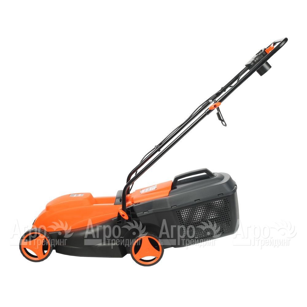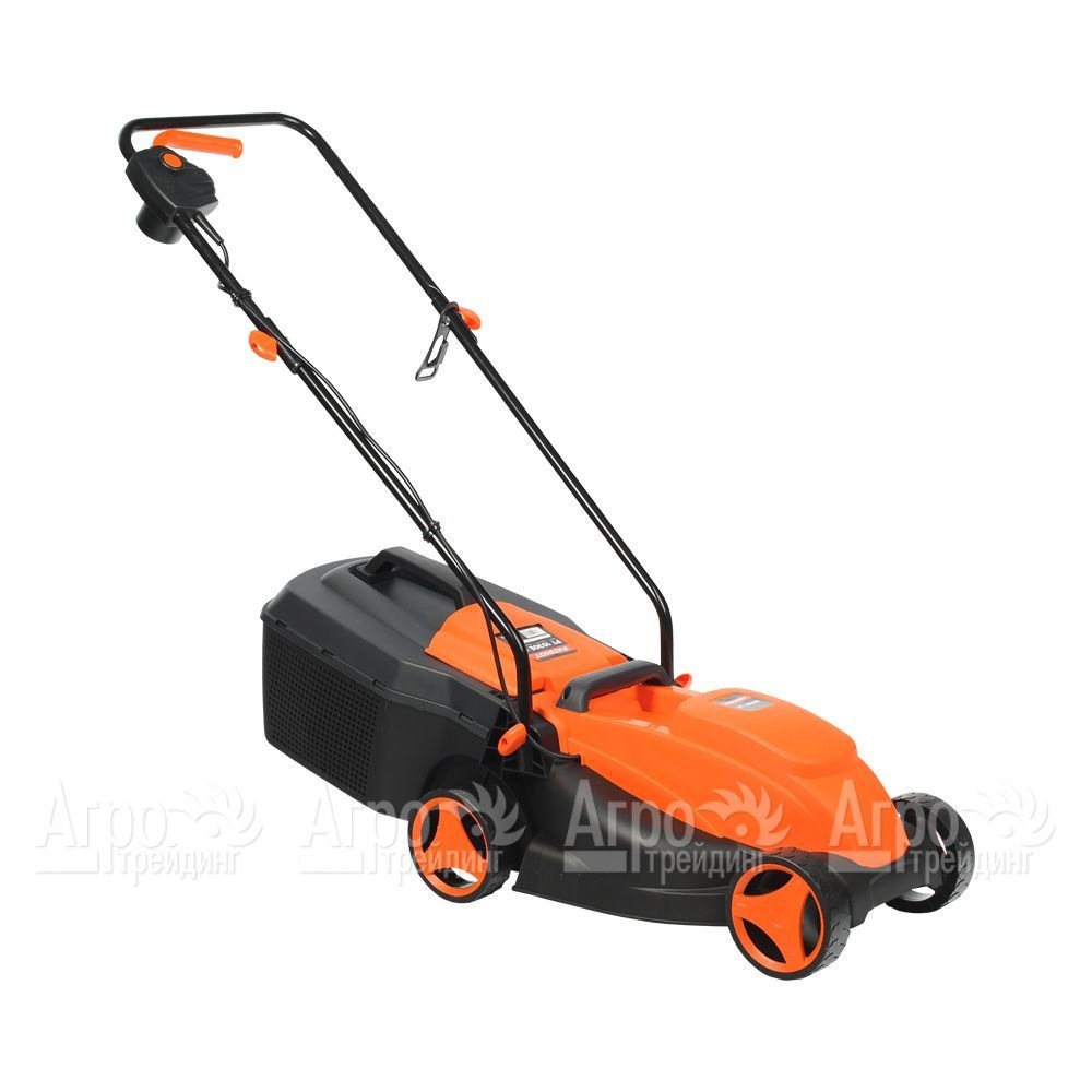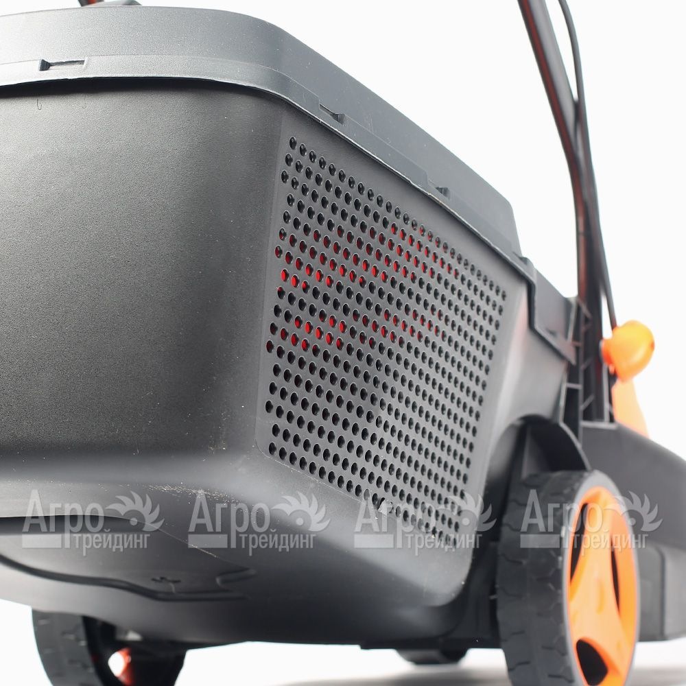 Характеристики товара: Газонокосилка электрическая Patriot PT 1030ЕПодробное описание товараГазонокосилка электрическая Patriot PT 1030Е предназначена для бытового использования. Она отлично справляется с кошением травы на газонах небольшой и средней площади в местах, где имеется возможность подключиться к стандартной сети электроснабжения. К преимуществам данной модели относят её производительность, надёжный двигатель и качественный режущий инструмент. Несмотря на то, что агрегат не относится к самоходным машинам, работать с ним достаточно легко благодаря малому весу садовой техники и четырёх широких колёс. Электрокосилка Патриот PT 1030Е чаще всего используется на придомовой территории, в садах, на даче или в огороде. Скошенная ножами трава собирается в травосборник большого объёма. Все элементы управления агрегатом расположены на рукоятке, оборудованной для удобства захвата рукой мягкими вставками. При необходимости рукоятку можно складывать, обеспечивая машине удобство при транспортировке и хранении. Корпус газонокосилки сделан из прочного пластика. Высота скашивания травы регулируется центральным рычагом. Во время эксплуатации агрегат требует к себе минимум внимания.