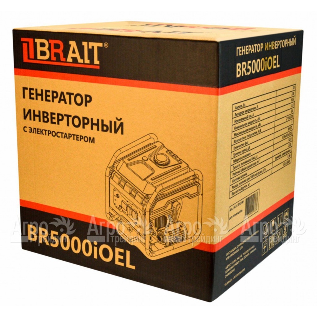 Инверторный бензогенератор Brait BR5000iOEL 3.6 кВт