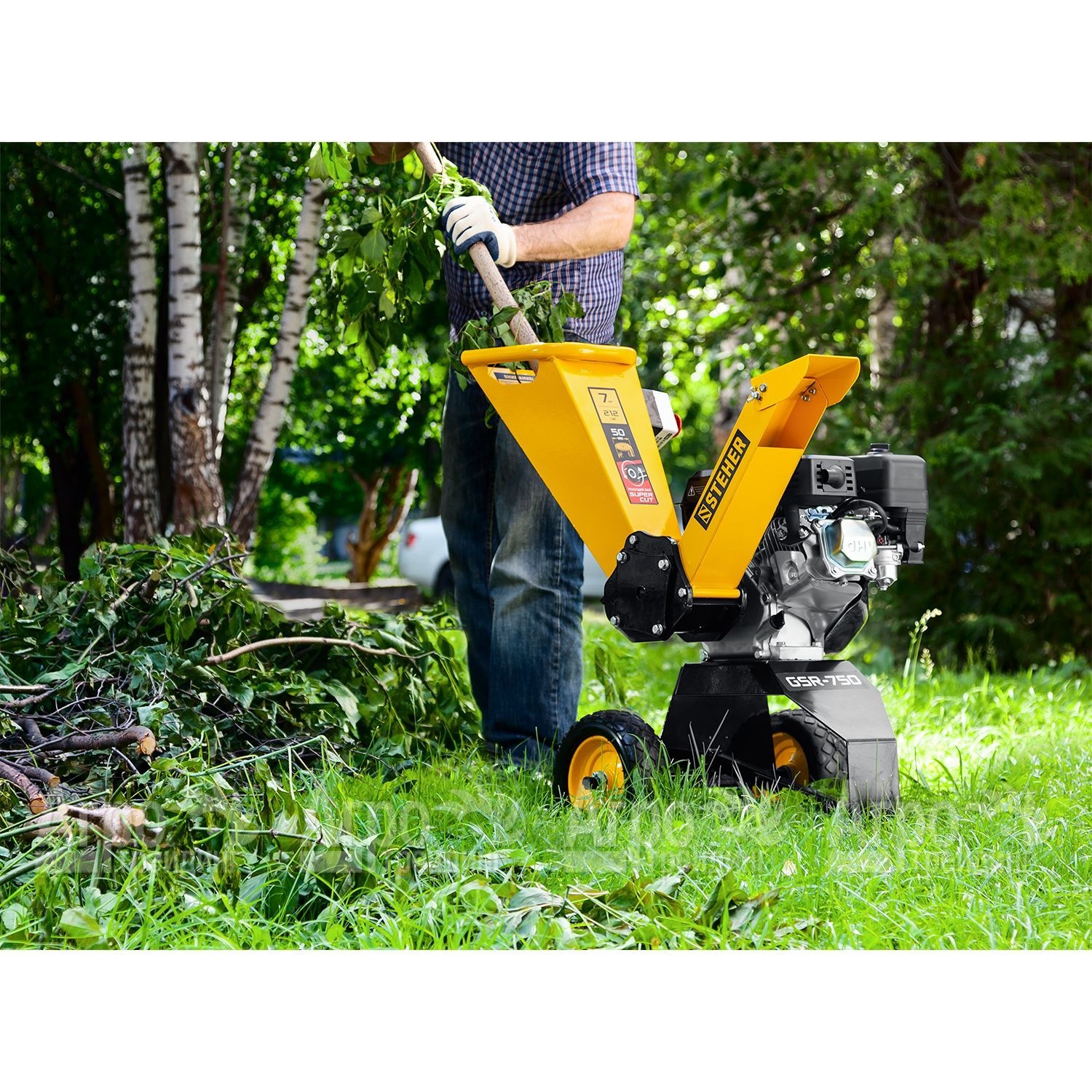 Характеристики товара: Измельчитель бензиновый Steher GSR-750Подробное описание товараИзмельчитель бензиновый Steher GSR-750 используется для переработки растительных отходов, включая скошенную траву, обрезанные ветви или опавшую листву. В качестве режущей системы используется 2-ножевой вал, обеспечивающий максимальную производительность. Сами режущие элементы выполнены из закаленной стали и имеют двухуровневую заточку для улучшения режущей способности. Увеличенный размер колес делает измельчитель мобильным и упрощает процесс эксплуатации. Для загрузки растительности предусмотрена большая воронка. В качестве силового агрегата используется мощный 7-сильный бензиновый двигатель, рассчитанный на измельчение до 200 кг растительных отходов за час работы. Допустимый диаметр ветвей достигает 50 мм, что позволяет переработать большое количество садового мусора без остановок. Режущий инструмент вращается со скоростью 2700/3600 оборотов в минуту, не оставляя шансов даже влажным и достаточно толстым ветвям. Все рабочие узлы и органы бензинового измельчителя изготовлены из качественных, устойчивых к износу и повреждениям материалов. Они рассчитаны на долгую эксплуатацию без поломок и технического обслуживания.