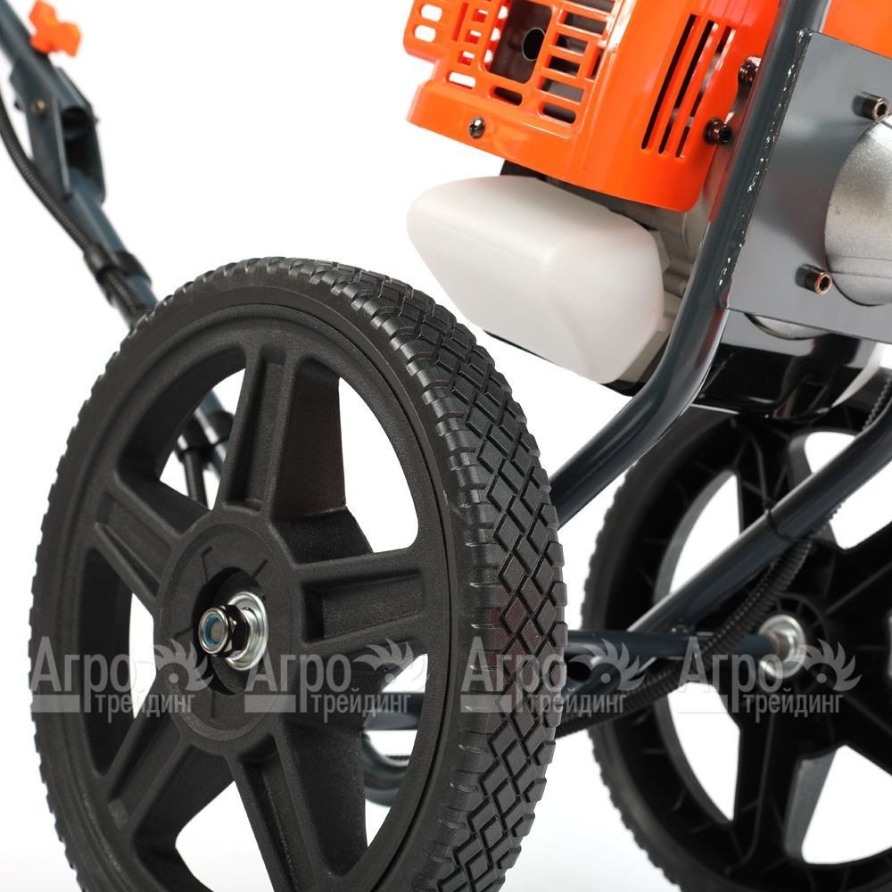 Характеристики товара: Колесный триммер Patriot PT 520Подробное описание товараКолесный триммер Patriot PT 520 широко используется для кошения растительности различные высоты. Для максимальной производительности, экономичного расхода топлива и продолжительного рабочего режима предусмотрен современный двухтактный двигатель. В свою очередь, обеспечить отличную проходимость по неровной поверхности позволяют крупные колеса. Отдельного внимания заслуживает складная рукоятка, позволяющая облегчить процесс транспортировки и хранения устройства. Для комфортного управления все рабочие органы размещены на удобной U-образной рукоятке. Также к числу значимых достоинств модели относится возможность быстрого запуска, чему способствует система легкого старта. Способность справляться с высокой растительностью достигается за счет прочного редуктора и жесткого вала. |