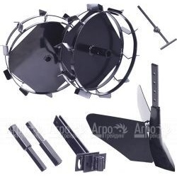 Характеристики товара: Комплект навесного оборудования Patriot КНО-MПодробное описание товараВ комплект навесного оборудования Patriot КНО-М входят два грунтозацепа, окучник, удлинители и универсальная сцепка, который используется для установки к мотоблокам следующих моделей: МБП-7.0/900, МБП-9.0/900. Грунтозацепы повышают эффективность тягового усилия и проходимость мотоблока при выполнении тяжелых полевых операций, таких как окучивание культур посредством окучника. Удлинители служат для увеличения ширины колеи. При помощи сцепки крепят навесные орудия к мотоблоку.