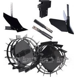 Характеристики товара: Комплект навесного оборудования Patriot КНО-OПодробное описание товараКомплект навесного оборудования Patriot КНО-O HG входят два грунтозацепа, окучник, плуг, удлинители и универсальная сцепка, которые используется для установки к мотоблокам следующих моделей: Dallas 2, Florida 2, HG-685R, Columbia-3, HG-460, HG-785RP. Грунтозацепы позволяют повысить эффективность тягового усилия и проходимость техники при выполнении тяжелых полевых работ, таких, как пахота или окучивание. Удлинители служат для увеличения ширины колеи. При помощи сцепки плуг и окучник крепят к мотоблоку.