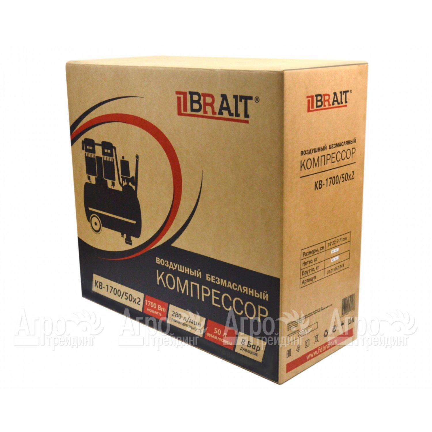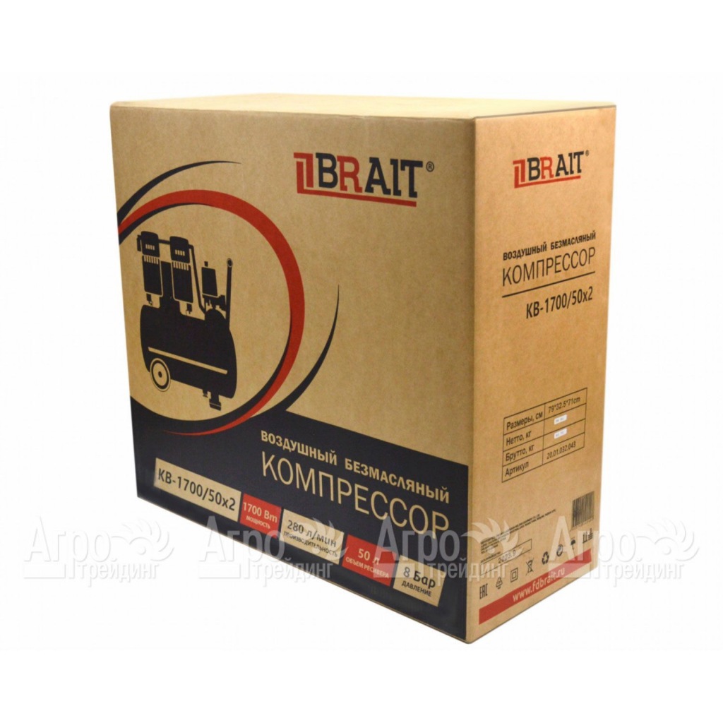 Компрессор безмаслянный Brait KB-1700/50X2