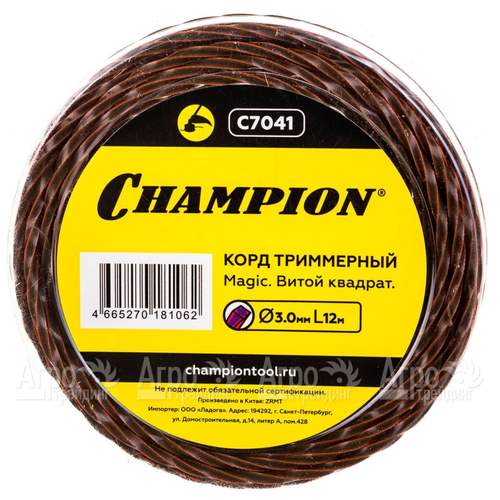 Характеристики товара: Корд триммерный Champion Magic 3мм, 12м (витой квадрат)