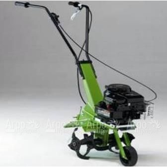 В комплекте - почвофреза; дополнительно - окучник, сборщик листвы. Удачная конструкция бензомоторной модификации в сочетании с хорошей мощностью позволяет ей соперничать по качеству и глубине обработки с более серьезными коллегами. Модель рассчитана на фрезерование сравнительно узкой полоски земли (параметры культивации как раз соответствуют ее скромному весу), но зато сложные почвы не создадут проблем. Качество обработки действительно на высоте : на 360 мм ширины захвата приходятся четыре ножа фрезы, в то время как у большинства аналогов других производителей - только два. Культиваторы имеют вертикальную компоновку в сочетании с ременным сцеплением и гипоидной передачей. Подобный набор технических решений встречается редко, но ему следует отдать должное - конструкция продумана до мелочей (например, кожух редуктора очень узкий и не затрудняет заглубление при использовании почвофрезы). Помимо двигателя Briggs&Stratton на бензомоторной La Zappa устанавливают и другие моторы (например, Tecumseh или Honda). Машины эргономичны, при эксплуатации вызывают лишь положительные эмоции. Нет нареканий и к органам управления (в частности, предусмотрена регулировка рулевой колонки по высоте). Модели хорошо заглубляются, не требуя дополнительных усилий. При этом небольшой вес культиваторов позволяет управиться с ними даже женщинам и пожилым людям. Однако следует помнить, что обработка обширных участков будет утомительной для любого оператора, поскольку ширина захвата мала и не регулируется. Модели зарекомендовали себя как неприхотливые и долговечные. Мощный мотор бензиновой модификации нагружен сравнительно слабо, а потому работает в щадящем режиме, что продлевает срок его службы. Гипоидная передача в редукторе - очень надежный вариант трансмиссии.