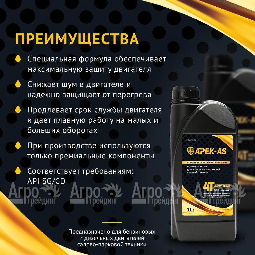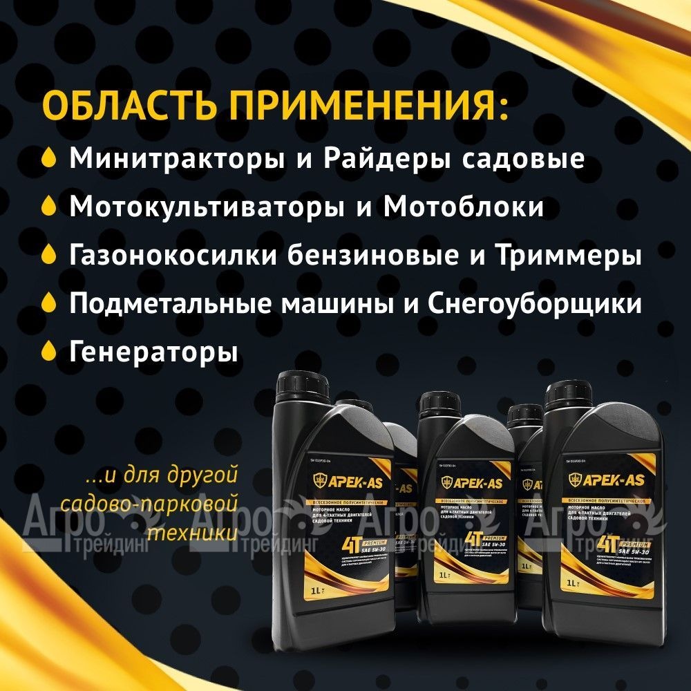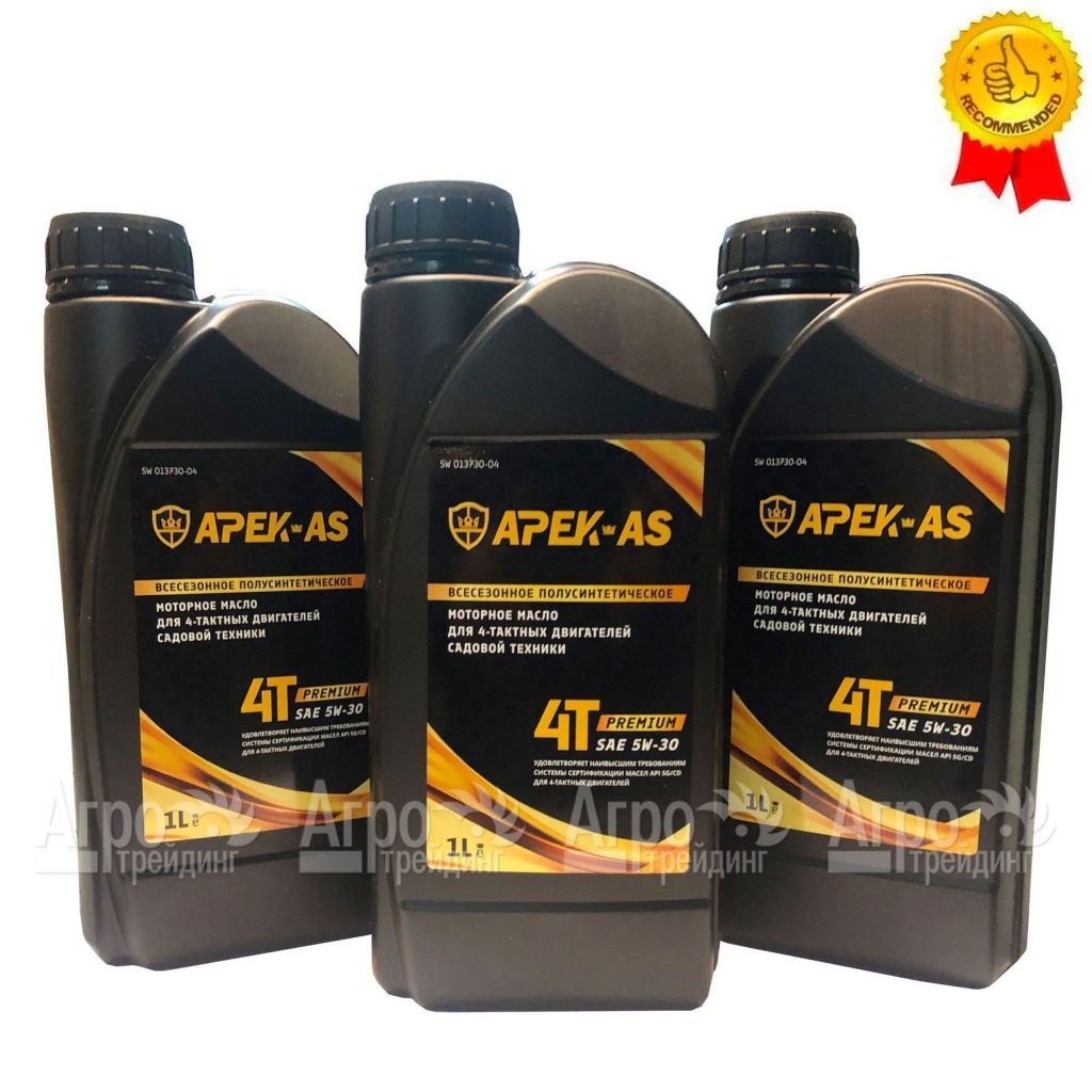 Рекомендовано APEK-AS Garden Company. На фотографии Масло моторное всесезонное полусинтетическое APEK-AS Premium 5W30 (1,0л.) для 4-х тактных двигателей:
