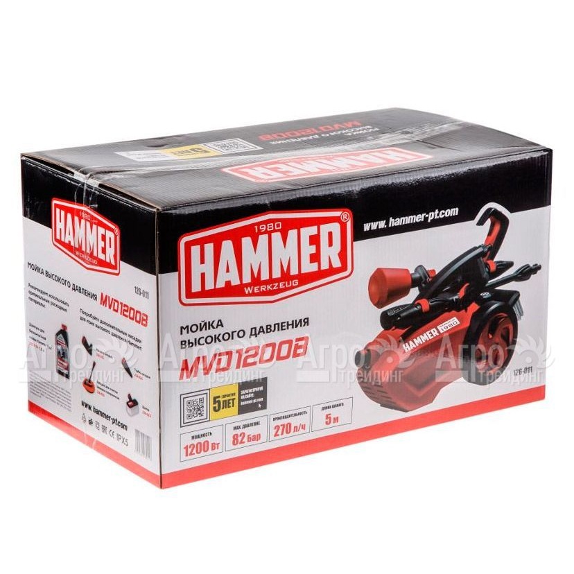 Характеристики товара: Мойка высокого давления Hammer MVD1200BПодробное описание товараМойка высокого давления Hammer MVD1200B – относиться к самым популярным бытовым приборам, предназначенным для очищения от загрязнений транспортных средств, заборов, стен домов, окно и других поверхностей различного рельефа. Благодаря данному устройству можно эффективно удалить гряз в самых труднодоступных местах строения или автомобиля. Данная модель экономно расходует воду, потребляет немного электроэнергии и удобна в использовании. При необходимости для мытья можно использовать специальные моющиеся средства. Для них в корпусе прибора имеется отдельная ёмкость. В комплект агрегата входит специальная пенообразующая насадка. Электрическая мойка Хаммер будет полезна на даче, в загородном доме, гараже, мастерской и в других местах, где есть возможность подключиться к сети электроснабжения. Среди достоинств агрегата можно выделить наличие быстросъёмных соединений шлангов, транспортировочных колёс, специальных пазов для крепления кабеля, пистолета. Небольшой вес и габариты мойки, ещё один плюс этого устройства. При этом стоит такая модель совсем немного.
