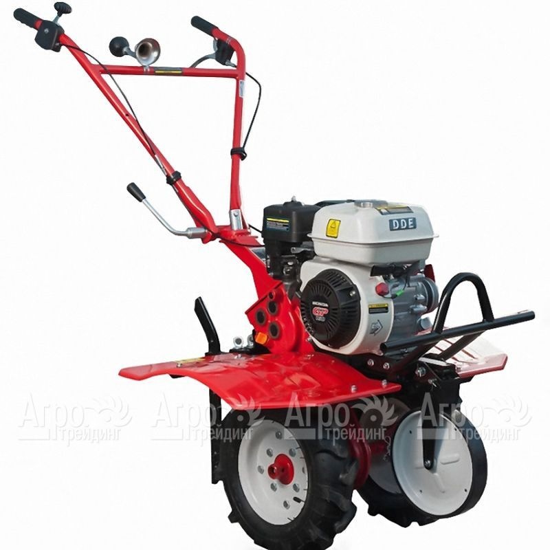Характеристики товара: Мотоблок DDE V 700 II - H160W Буцефал-2MHПодробное описание товараМногофункциональная техника малой механизации -мотоблок DDE V 700 II - H160W Буцефал-2MH способна облегчить труд и обеспечить выполнение целого ряда полевых работ на приусадебном или фермерском хозяйстве. В качестве силового агрегата используется долговечный четырехтактный двигатель Honda GP160 мощностью 5,5 л.с. с механической системой запуска, двигатель справляется с обработкой чернозема, суглинков и глинистых почв. В коробке передач имеется две передние и реверсная скорости, что обеспечивает выполнение операций в оптимальном режиме и маневров на участке с ограниченным пространством. Колеса большого диаметра с сельскохозяйственным протектором способствуют высокой проходимости по рыхлому грунту. Регулируемая по высоте рукоятка, оснащенные противоскользящими накладками ручки, удобно расположенные элементы управления на рукоятке повышают комфортность работы с мотоблоком DDE V 700 II - H160W Буцефал-2MH. Уровень надежности техники повышается благодаря цепному редуктору, чугунной КПП. В мотоблоке предусмотрено имеет устройство для подачи предупреждающего звукового сигнала -клаксон.