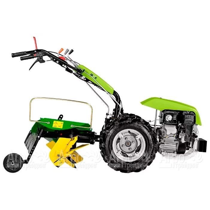Характеристики товара: Мотоблок Grillo G 85d AE (Robin-Subaru)Подробное описание товараМотоблок Grillo G 85d AE (Robin-Subaru) отличается эргономичной конструкцией и многофункциональностью, что позволяет выполнять любые сельскохозяйственные работы в течение длительного времени в непрерывном режиме. Значительному облегчению работы во время маневрирования способствует блокируемый дифференциал. С целью уменьшения толчков, передаваемых от мотоблока на рукоятку, рулевая колонка оснащена специальной антивибрационной системой. Отдельного внимания заслуживает многоскоростная трансмиссия, за счет которой достигается быстрая адаптация под выполняемый вид работ. С целью исключения травмирования пользователя в устройстве предусмотрена система автоматического отключения навесной техники и ВОМ. Оперативность подсоединения дополнительного оборудования становится возможной благодаря наличию быстроразъемной муфты. В комплекте с изделием имеется капот, предотвращающий попадание пыли, и колеса с агрессивным протекторным покрытием для обеспечения безупречных сцепных свойств.
