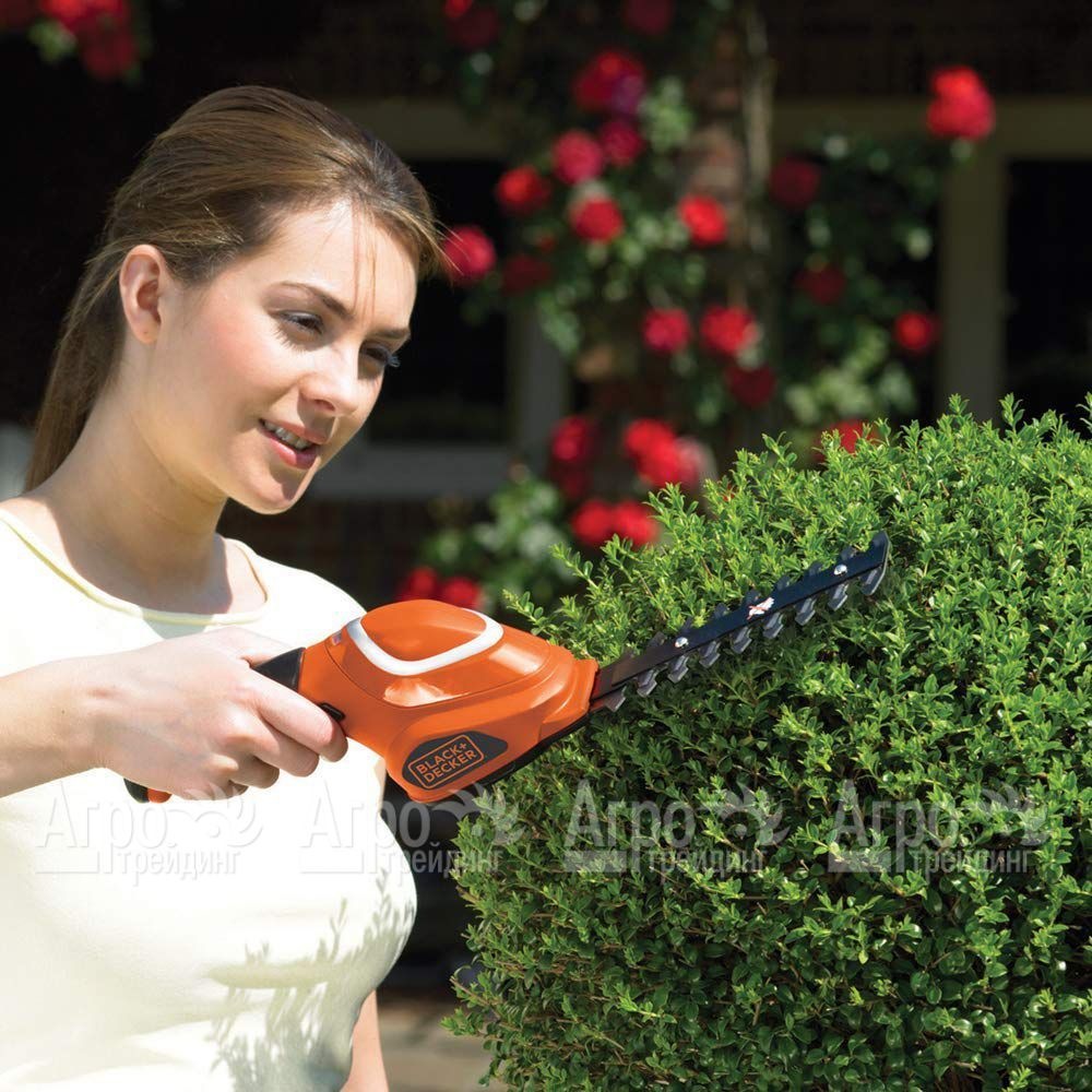 Характеристики товара: Ножницы аккумуляторные Black+Decker GSL700Подробное описание товараНожницы аккумуляторные Black+Decker GSL700 используется для работы в саду, на приусадебном участке, даче. Будет полезен такой инструмент и специалистам, занимающимся ландшафтным дизайном. С его помощью подравнивают края газонов и цветников, живых изгородей, обрезают кустарники. Благодаря сменным насадкам любая работа с ножницами будет качественной и лёгкой. Корпус изделия изготовлен из ударопрочного пластика, защищающего внутренние узлы машины от механических повреждений и загрязнения. Электродвигатель имеет небольшие размеры и повышенный рабочий ресурс. Питание мотор получает от встроенного литий-ионного аккумулятора. Чтобы полностью зарядить батарею требуется всего чуть более одного часа. АКБ не имеет эффекта саморазряда и обеспечивает стабильную работу электроприбора длительное время. В качестве режущего элемента в садовых ножницах Black+Decker GSL700 используется двухсторонний нож в двух вариантах конструкции, для травы и веток. Его лезвия режут быстро и аккуратно, оставляя ровный срез. Эргономичная рукоятка машины удобно ложиться в ладонь. Запускается режущий инструмент нажатием одной кнопки. Кнопка-предохранитель исключает случайный пуск агрегата. Во время работы ножницы производят совсем немного шума и вибрации. При эксплуатации такая техника требует к себе минимум внимания и обслуживания. |