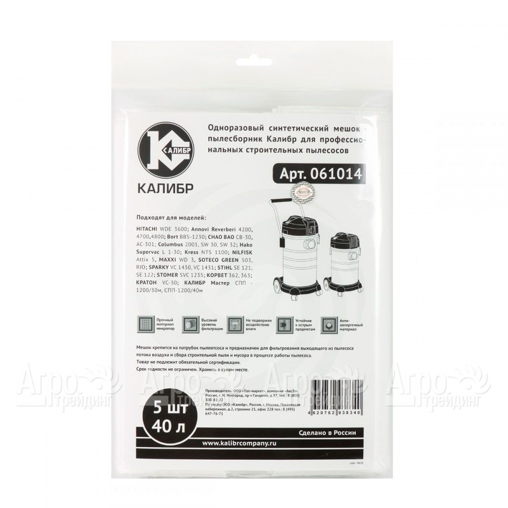 Одноразовые синтетические мешки пылесборники для пылесосов Калибр