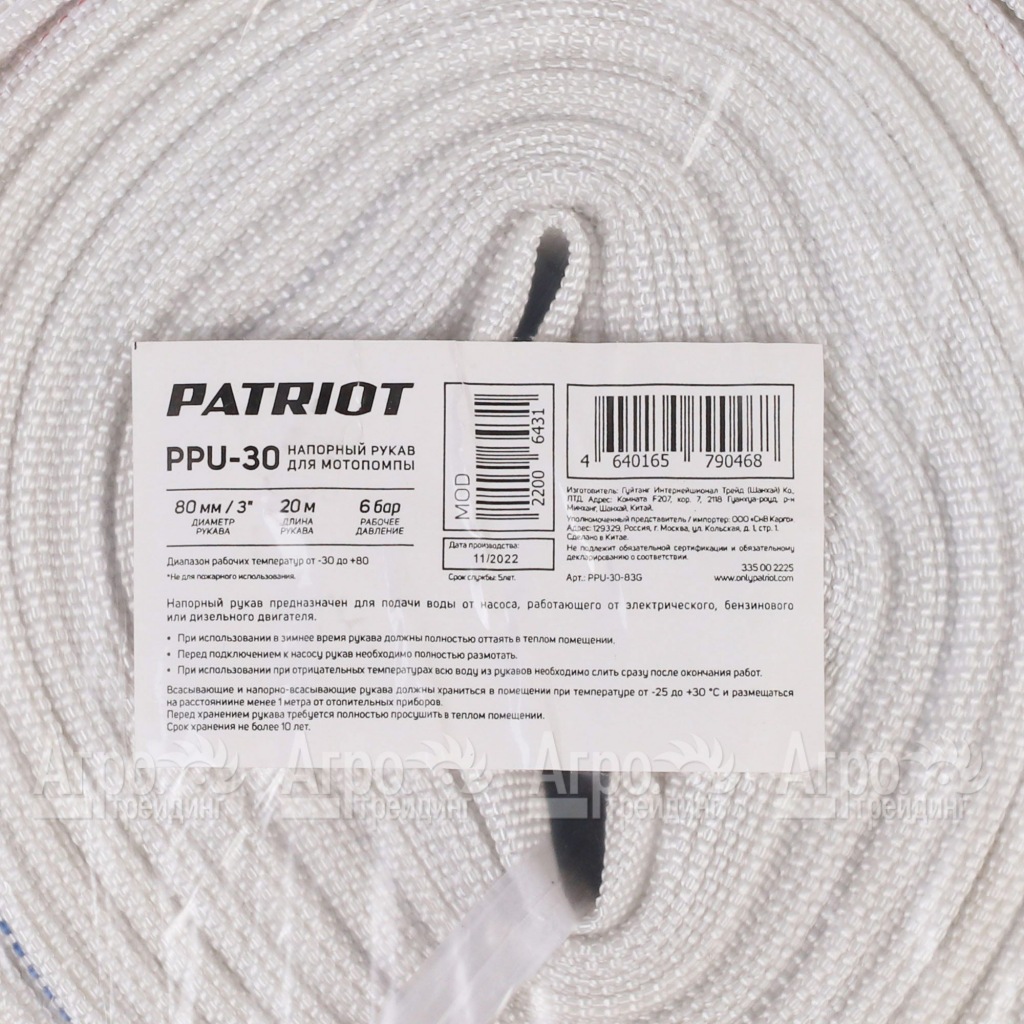 Характеристики товара: Рукав напорный PPU 30 для мотопомп Patriot