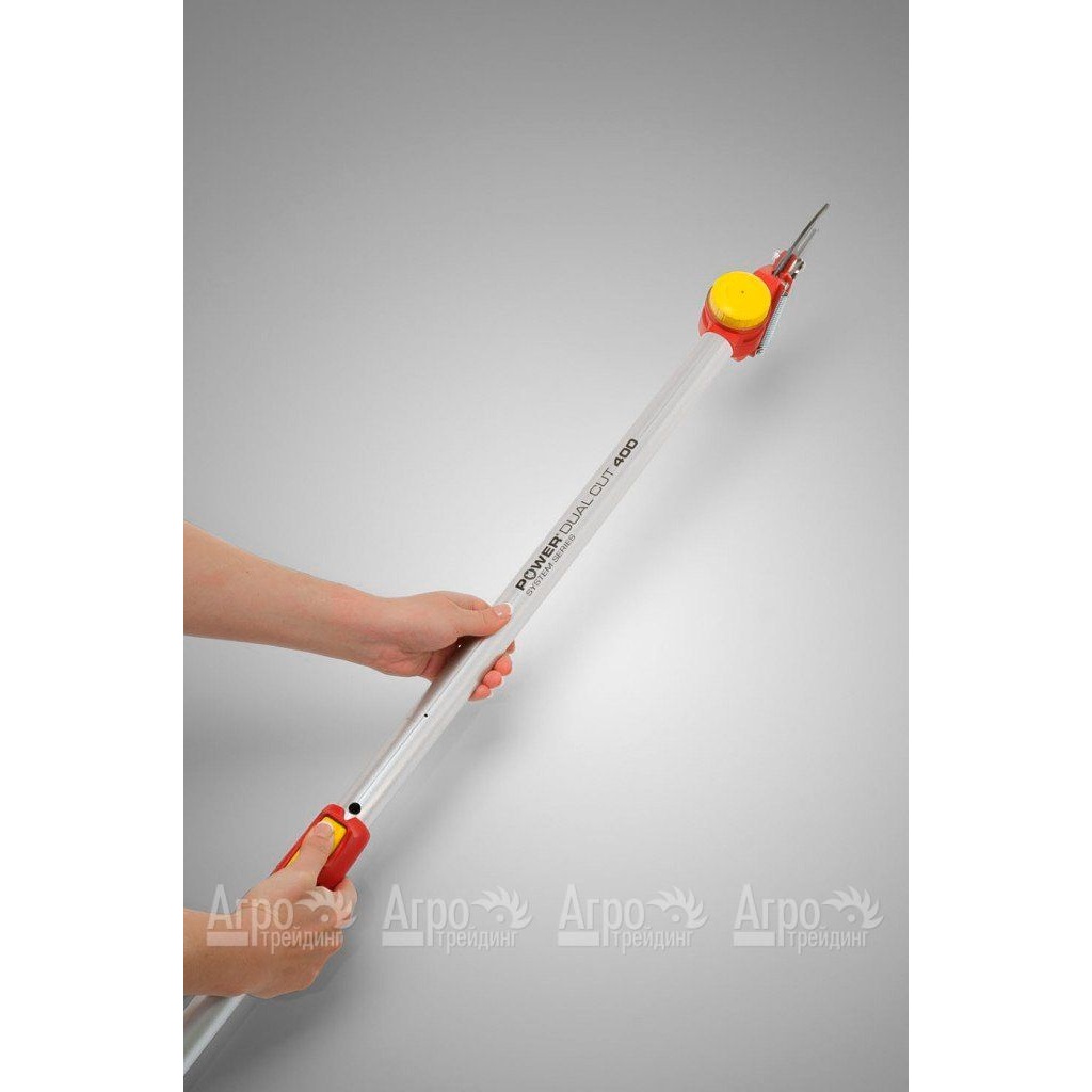 Характеристики товара: Секатор телескопический Wolf-Garten PDC RR 400 TПодробное описание товараСекатор телескопический Wolf-Garten PDC RR 400 T предназначен для срезания ветвей. Данная модель имеет узкую головку, что позволяет срезать сухие сучья, не повреждая близко растущие ветки. Режущее полотно оснащено специальной вставкой, предотвращающей накаливание металла. Для удобства работы угол обрезки ветвей можно изменять на 225 градусов. Высота рукоятки регулируется в диапазоне от 240 до 400 см. Предотвратить проскальзывание позволяет нижняя части ручки, которая имеет специальную вставку.