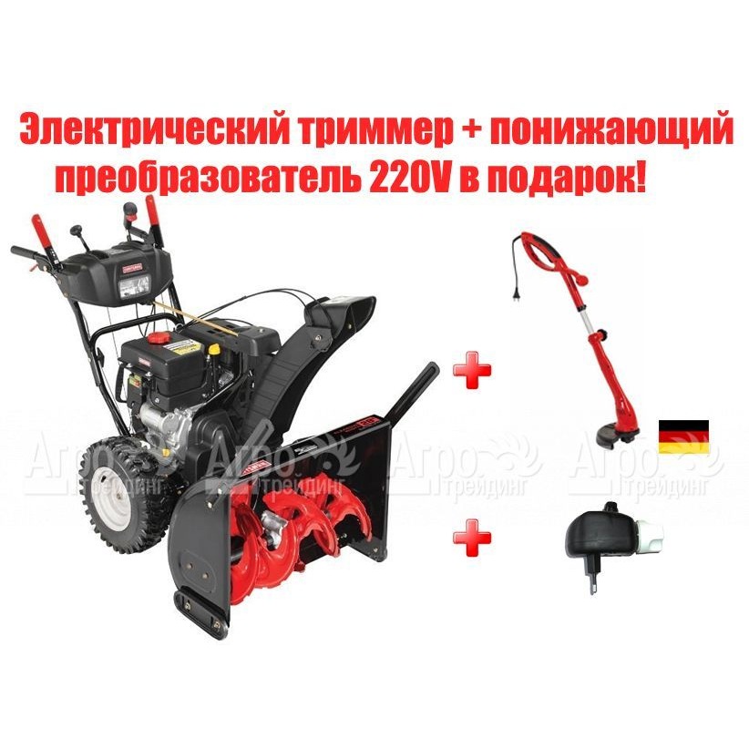 Характеристики товара: Снегоуборщик Craftsman 88395Подробное описание товараСамоходный снегоуборщик Craftsman, модель 88395, оснащённый бензиновым двигателем, собирается без применения специальных инструментов, имеет стальной шнек с острыми зубцами, измельчающий наледь, плотную снежную корку и слежавшийся снег. Колёса имеют самоочищающийся протектор, не пробуксовывают по снегу. Жёлоб снегоуборщика для выброса снега имеет особую конструкцию и увеличенные размеры. Агрегат является маневренным и имеет простую систему управления.