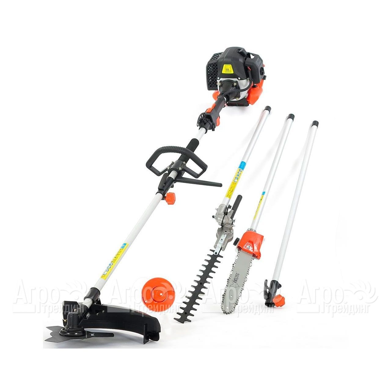 Характеристики товара: Триммер многофункциональный Fuxtec FX-MT152EПодробное описание товараТриммер многофункциональный Fuxtec FX-MT152E предназначен для использования в личном хозяйстве или в коммерческих целях. С его помощью организуют обслуживание зелёных насаждений, газонов, кустарников, живых изгородей. Даная модель комплектуется различными насадками, позволяющими выполнять многие виды работ: кошение травы, формирование кустов кустарника, санитарную обрезку ветвей. Для этого используются ножницы, кусторез, цепная пила. Кошения травы и молодой поросли кустарника осуществляется с помощью лески, помещённой в триммерную головку, или стального ножа. В основе триммера Fuxtec FX-MT152E лежит современный двигатель внутреннего сгорания. Мотор производительный и надёжный. Запускается всегда легко ручным стартером. Имеется насос для подкачки топливной смеси в карбюратор. Для облегчения доступа к высоким и дальним ветвям используется специальный удлинитель. Наплечный ремень уменьшает нагрузку на руки оператора во время работы. Защитный кожух вокруг триммерной головки не даёт растительной срезки далеко разлетаться. Для безопасности транспортировки техники предусмотрены чехлы для пилы и ножниц. |