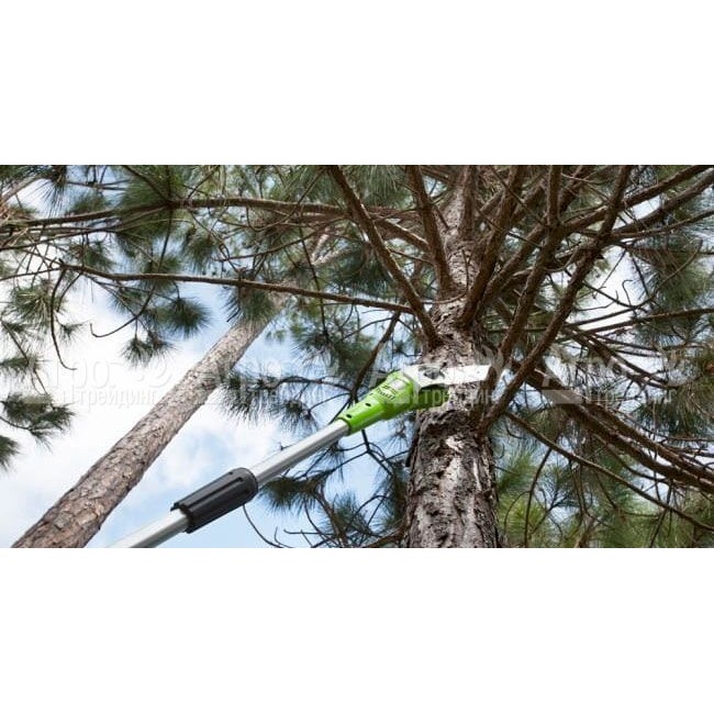Характеристики товара: Высоторез аккумуляторный GreenWorks G40PS20 (без аккумулятора и зарядного устройства)Подробное описание товараВысоторез аккумуляторный GreenWorks G40PS20 предназначен для выпиливания сухих ветвей и кронирования деревьев и кустарников. Данная садовая техника будет полезна в личном хозяйстве, на даче, в саду. Используют сучкорезы на предприятиях ЖКХ, в управляющих компаниях, организациях, обслуживающих лесопарковые зоны. К преимуществам данной модели относят её небольшой вес и простое обслуживание. Трёх коленная, разборная штанга агрегата позволяет работать на большой высоте. Удобная рукоятка и плечевой упор позволяют надёжно удерживать высоторез в руках. Для безопасной работы предусмотрен блокиратор случайного пуска машины. Большим плюсом сучкореза является его автономная работа. В качестве источника питания электрического двигателя машины предусмотрен литий-ионный аккумулятор, способный быстро заряжаться без эффекта памяти. Разобраться с принципом работы высотореза очень просто. Достаточно внимательно изучить инструкцию его эксплуатации. На фотографии Высоторез аккумуляторный GreenWorks G40PS20 (без аккумулятора и зарядного устройства):